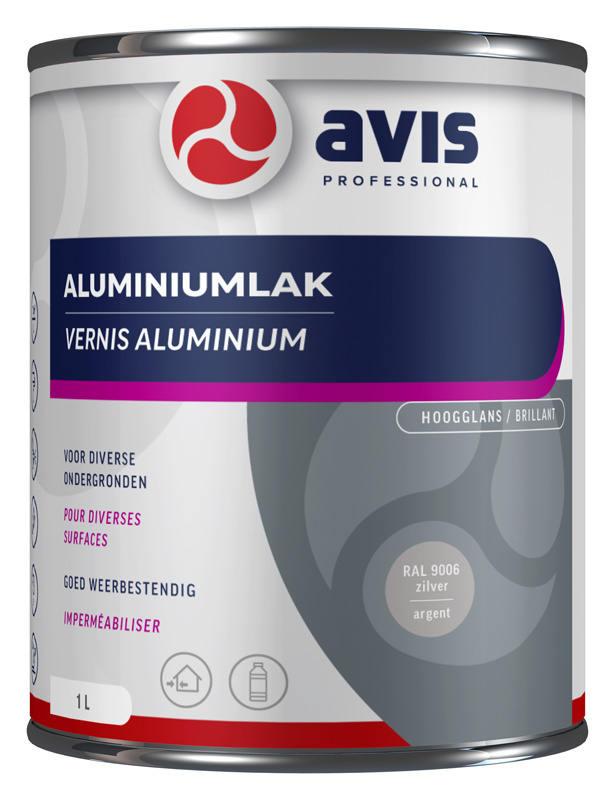 Avis Aluminiumlak is een hoogwaardige lak op terpentinebasis. Je kunt de aluminiumlak binnen, maar ook buiten gebruiken. Het is weerbestendig en prettig om mee te werken. RAL 9006 is de kleur zilver en zorgt ervoor dat de ondergrond een mooie zilveren look krijgt. De lak geeft een metaal effect aan de ondergrond en biedt tevens een beschermende werking, omdat het weer en waterbestendig is.